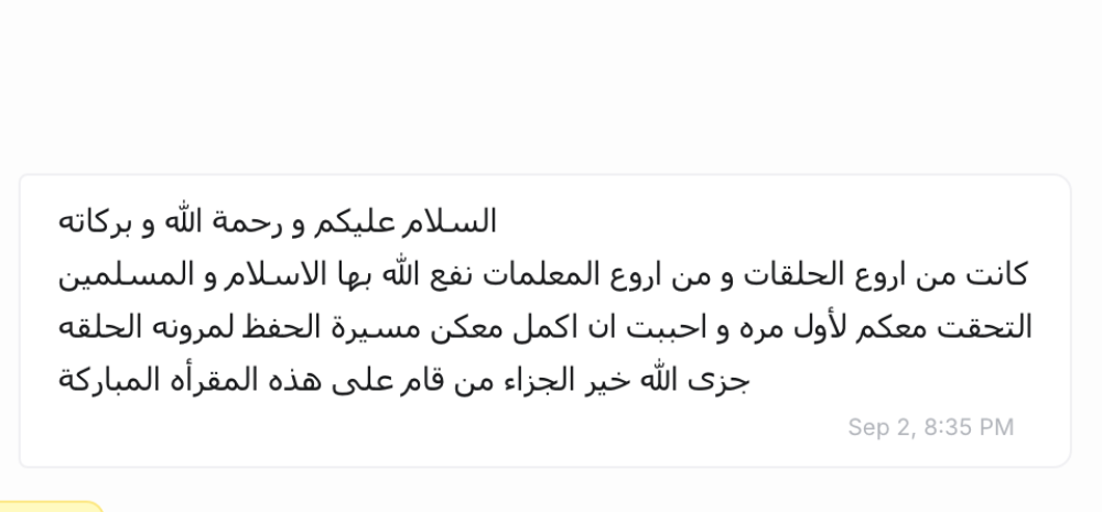 • طريقة الانضمام: يتم إرسال رابط الإنضمام لمجموعة الحلقة على الواتساب والرسائل النصية بعد إتمام التسجيل مباشرة.